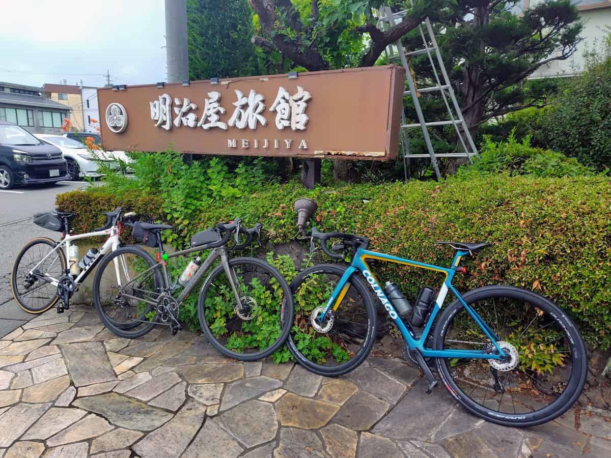 今回もTさんに企画を練ってもらいまして、浅間山をぐるりと一周「軽井沢グランフォンド」に挑戦することになりました。夏休みシーズンですから、まずは1泊する宿の確保から。安さ爆発のホテルナ〇ジマを押さえましたが、Gが出るという口コミでEさんにより即却下!代わりに予約した西軽井沢(北佐久郡御代田町)の明治屋旅館は、部屋が広々・食事も美味しく、従業員の方のホスピタリティも感じられて大満足でした♪ やっぱり旅先の宿って大事ですよね!