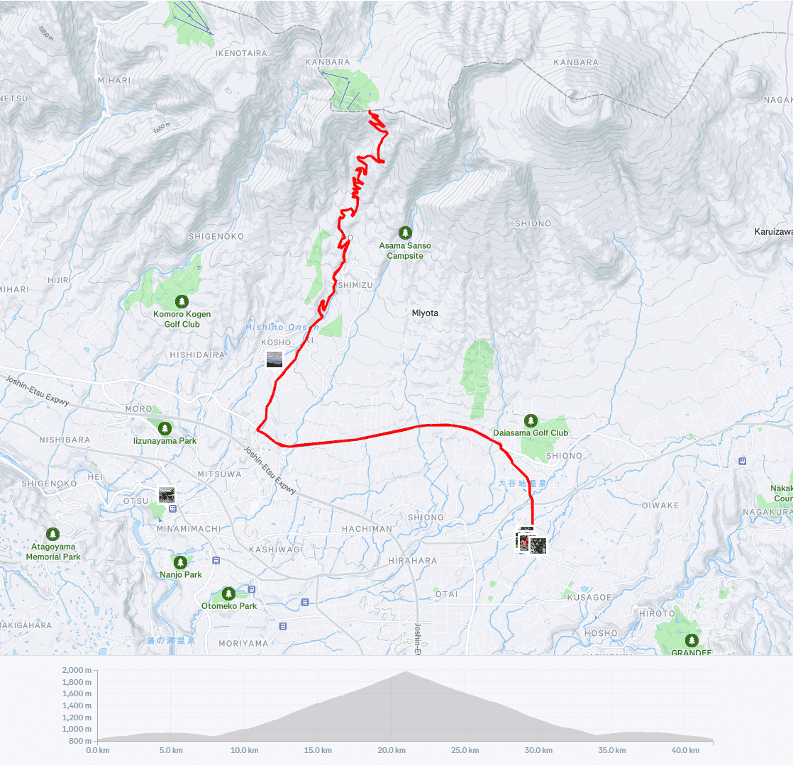 標高約2,000m超まで一気に登る、12㎞・1,000mUPの登坂は「車坂峠ヒルクライム」というレースが昨年まで毎年開催されていたようです。平均斜度が9%弱もあるこのコースは、10%超勾配区間が頻発するうえに、足を休められるような緩む箇所がほぼありません。Ride with GPSで公開されているルートでは、小諸駅から約17㎞・1,300mUPで平均勾配8%の上級コースに分類されてます。
