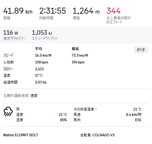 まぁ、ヒルクライム1本だけだしなと油断して登り始めた僕は、コロナ後の体調もあって全然踏めないことに気づきます(汗)。